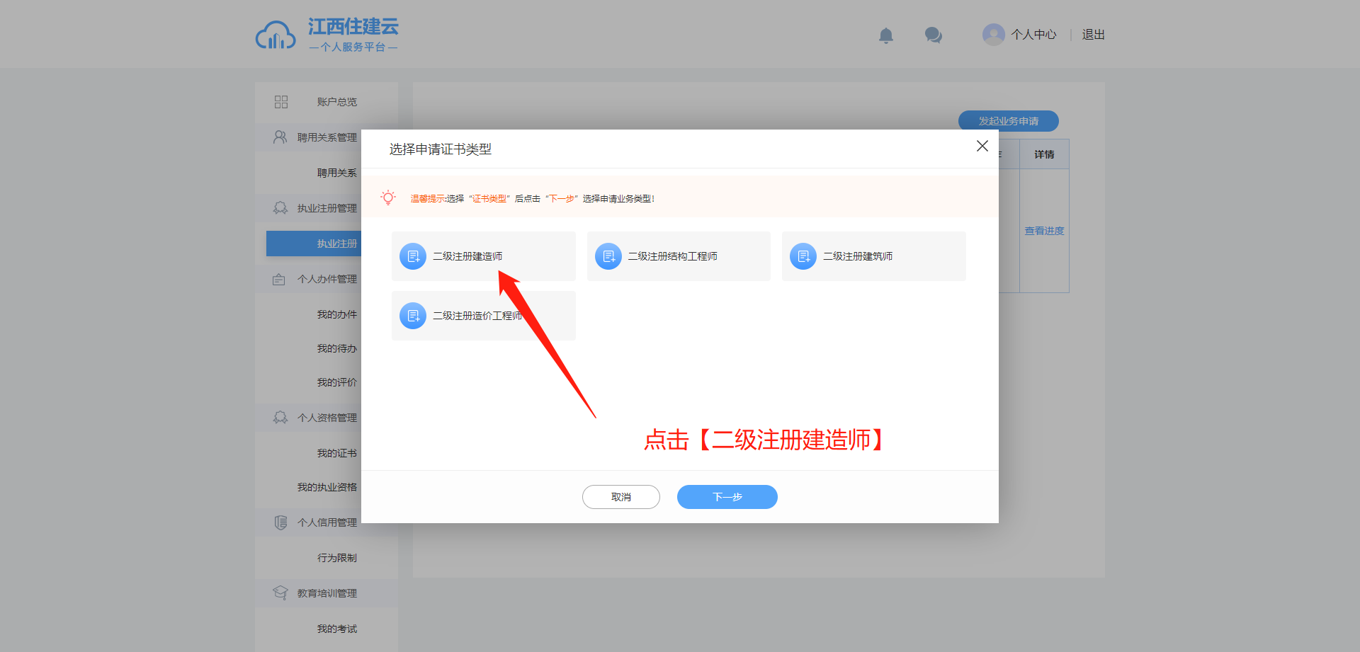以下操作屬于建造師注冊流程,僅適用于已有住建云聘用單位的人員,且沒有注冊。若你尚未有聘用單位,則無需關注 本操作流程。